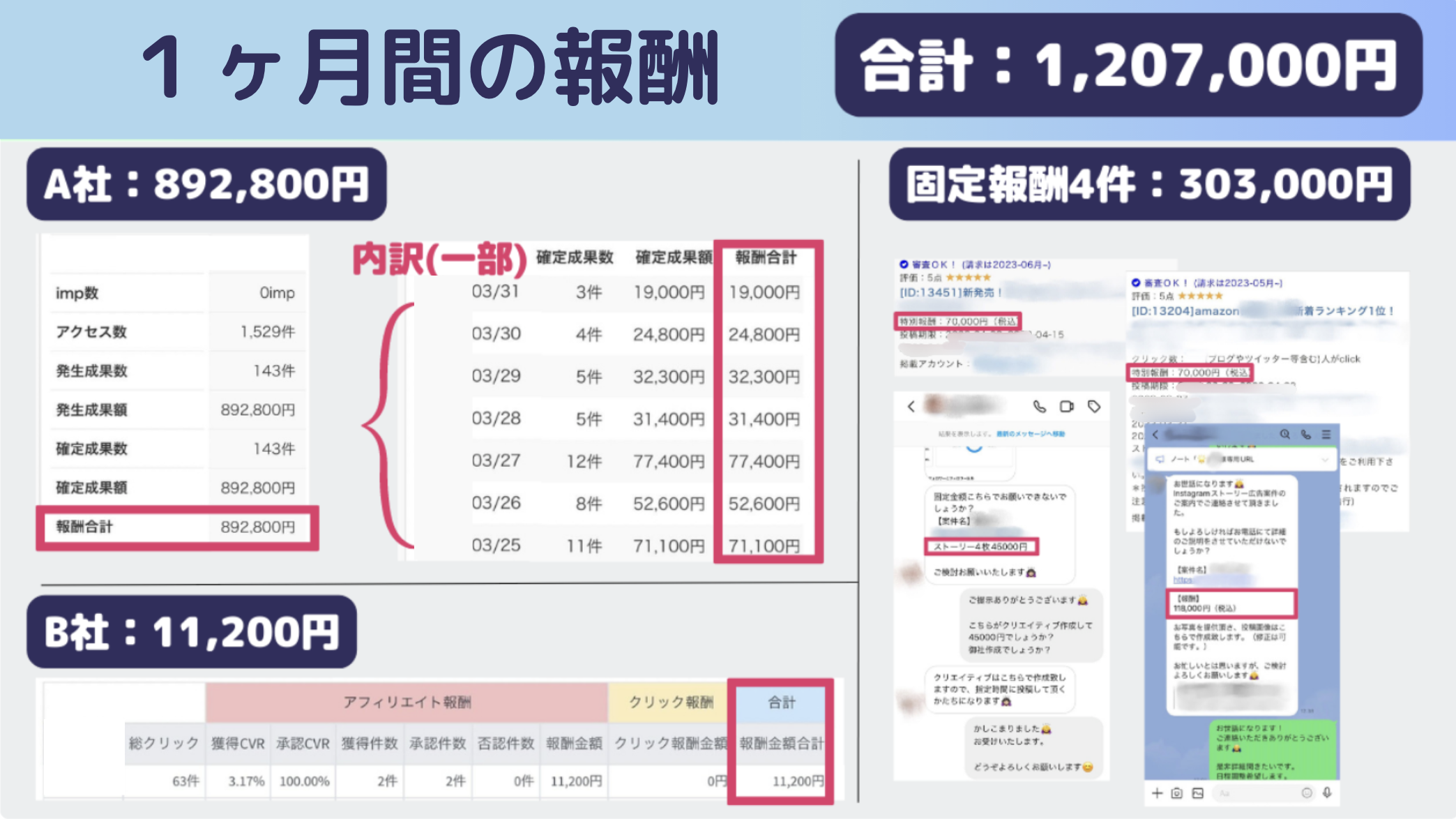 今回紹介するのアフィリエイトでの報酬は下の画像の通り、脱サラも叶いました。