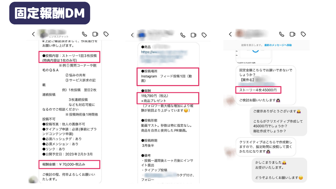 基本はインスタ内のDMで企業から連絡をいただきます。