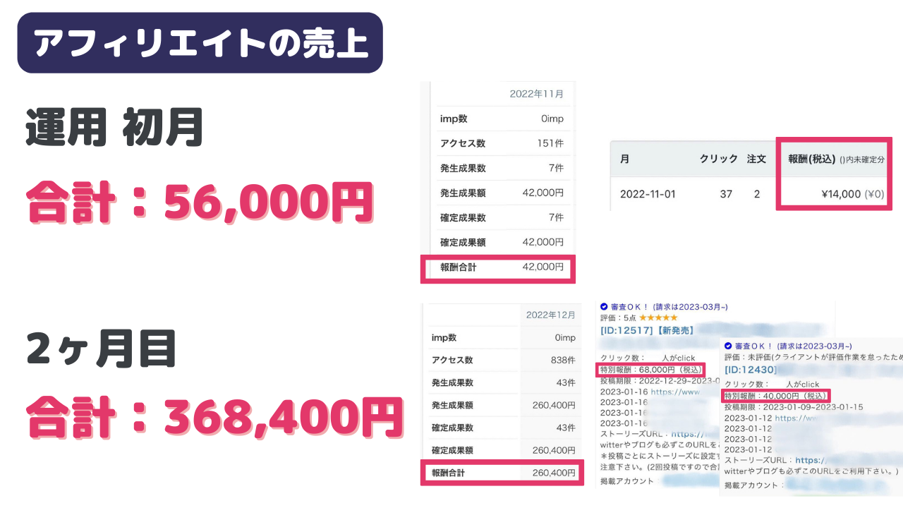 商品ごとに報酬単価が決められていて、売れた数×報酬単価が収益になります。